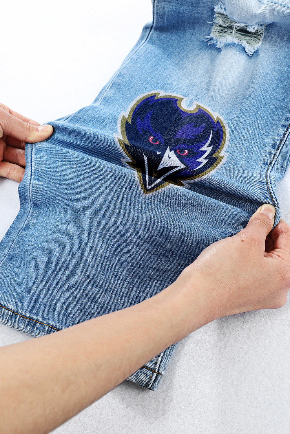 casual fashion perforated printed jeans
