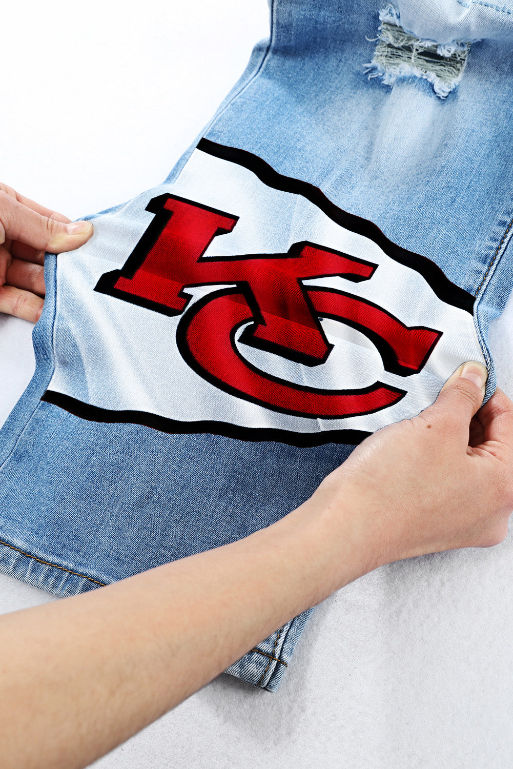 casual fashion perforated printed jeans
