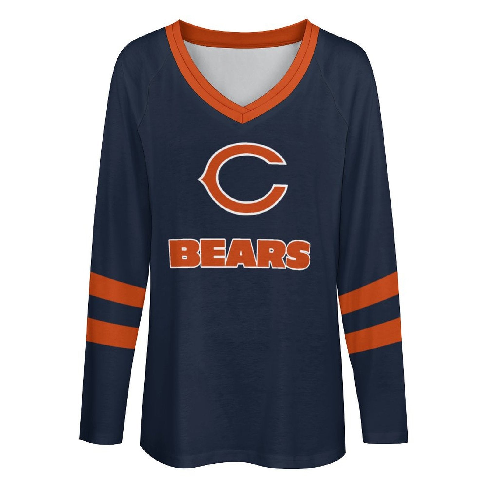 Chicago Bears Women's V-neck Double-layered Long-sleeved Loose T-shirt