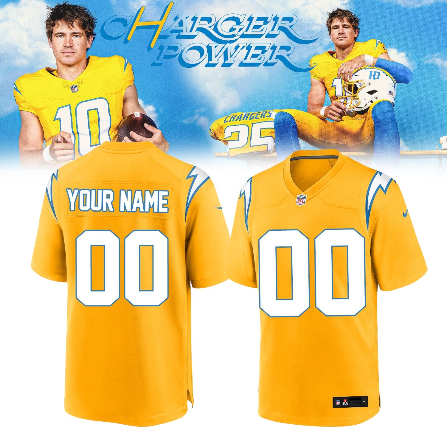 Los Angeles Chargers Power Jersey (Custom Name & Number)