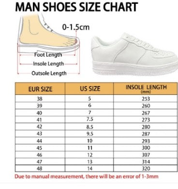 - Each pair of Sneaker is custom printed, cut, and sewn just for you when you place your order ? there may be small differences in the design on the seams and /or arms due to the custom nature of the production process!