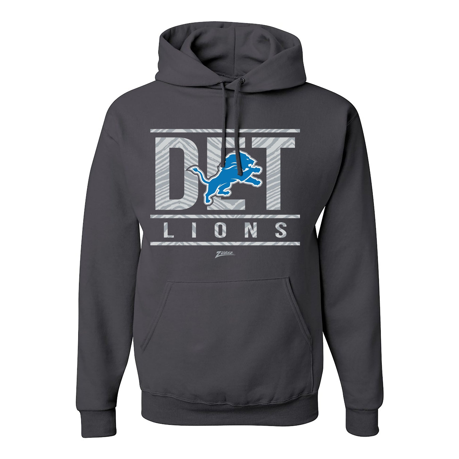 Zubaz NFL Detroit Lions Unisex Pullover Fleece Hoodie for Adult Men and Women, Z2C Goal Line, Charcoal