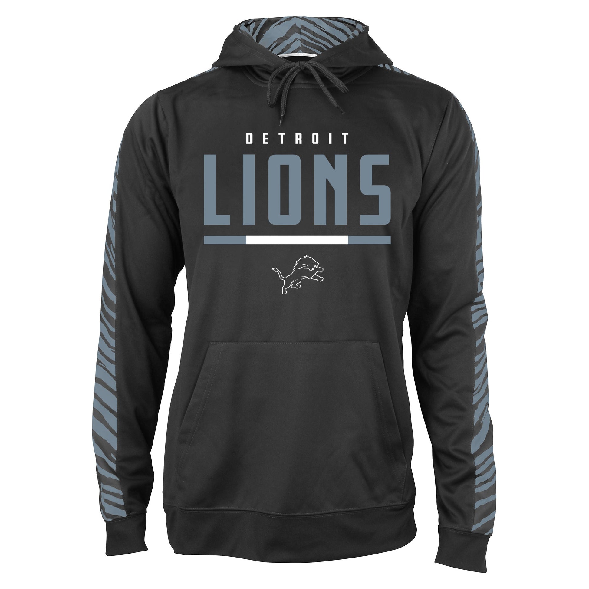 Zubaz NFL Men's Black and Grey Tonal Zebra Hoodie and Sleeve Detroit Lions