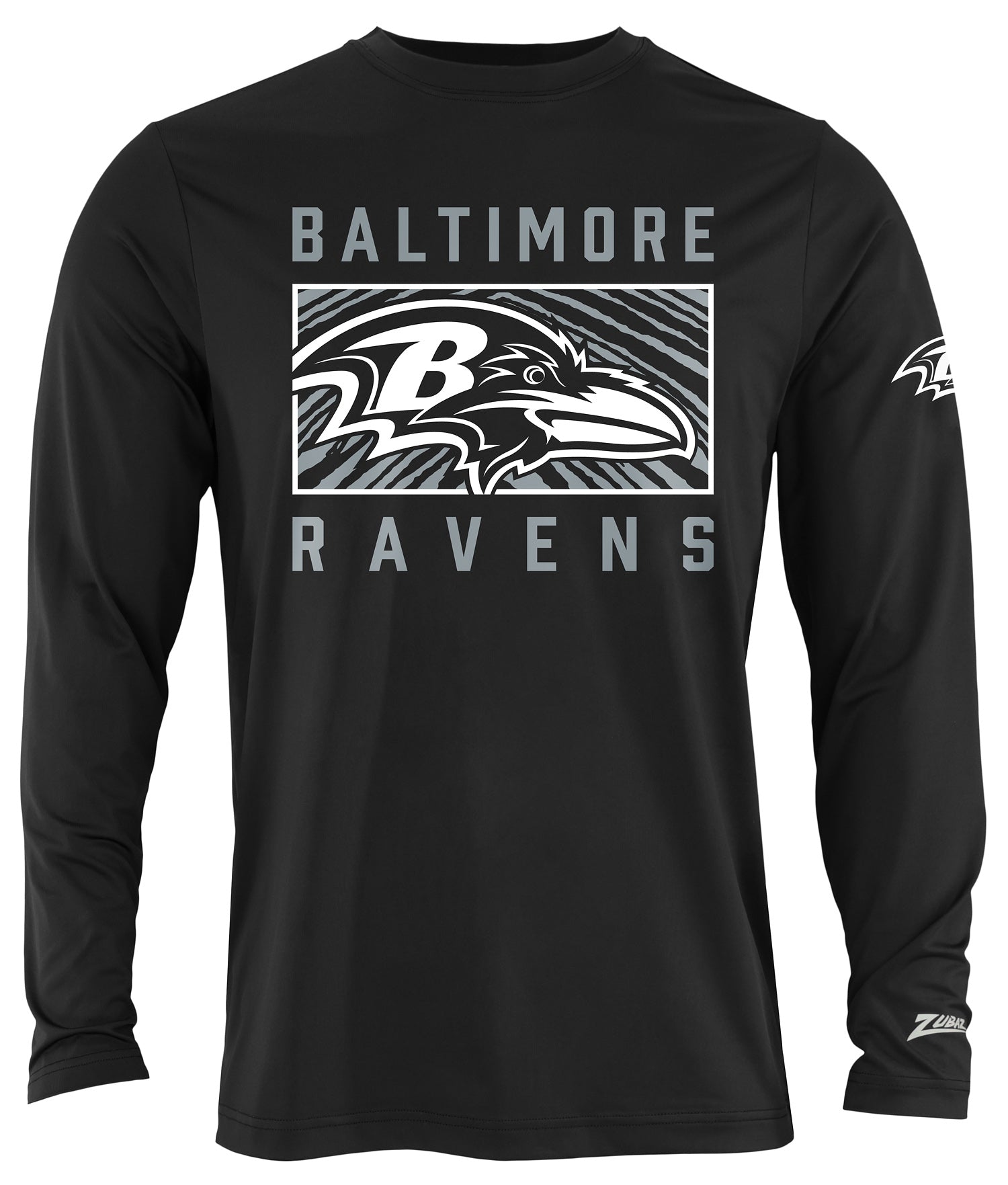 Zubaz NFL Men's Black End Zone Long Sleeve T-Shirt, Baltimore Ravens