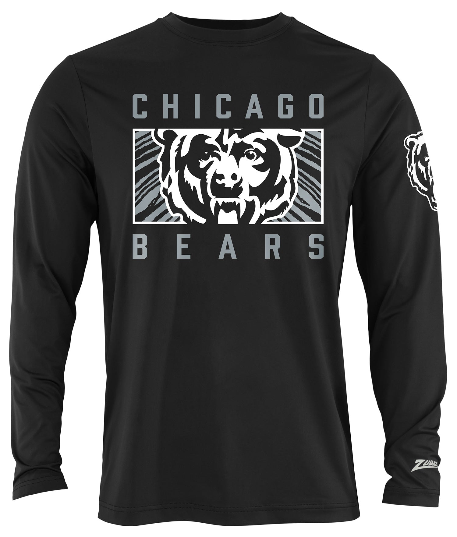Zubaz NFL Men's Black End Zone Long Sleeve T-Shirt, Chicago Bears