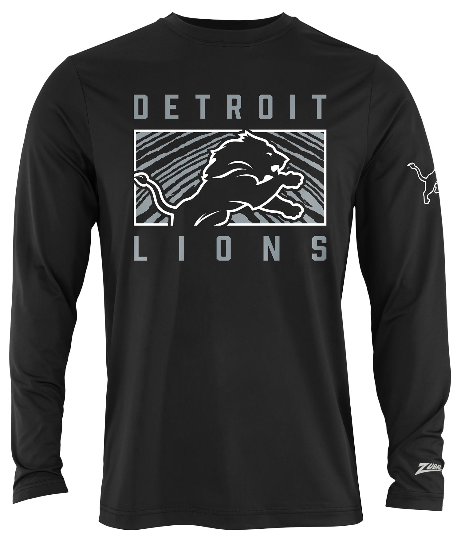 Zubaz NFL Men's Black End Zone Long Sleeve T-Shirt, Detroit Lions