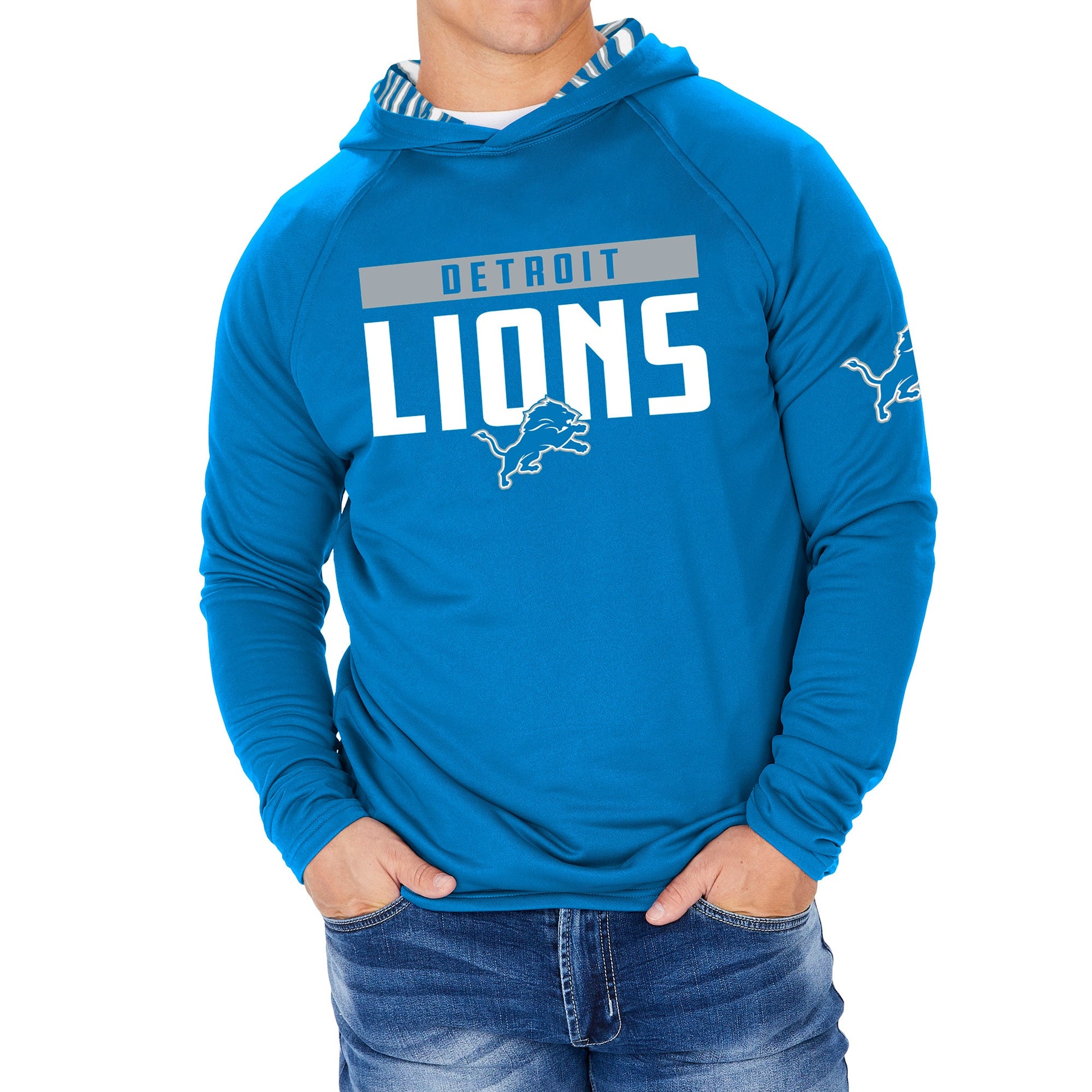 Zubaz NFL Men's Light Weight Team Color Hoodie With 3 Tone Zebra Lined Hood, Great Play Logo, Detroit Lions