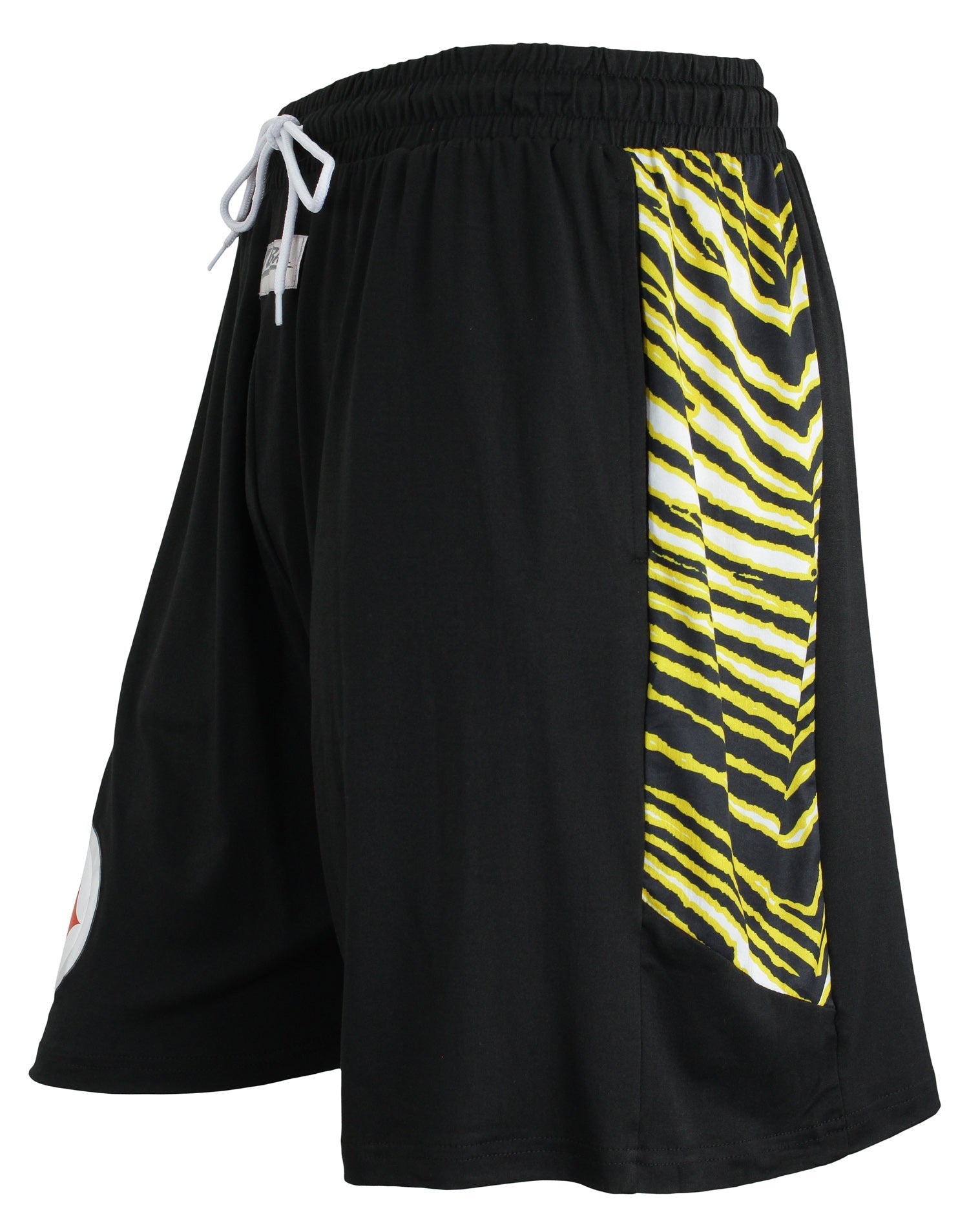 Zubaz NFL Men's Pittsburgh Steelers Team Logo Zebra Side Seam Shorts, Black