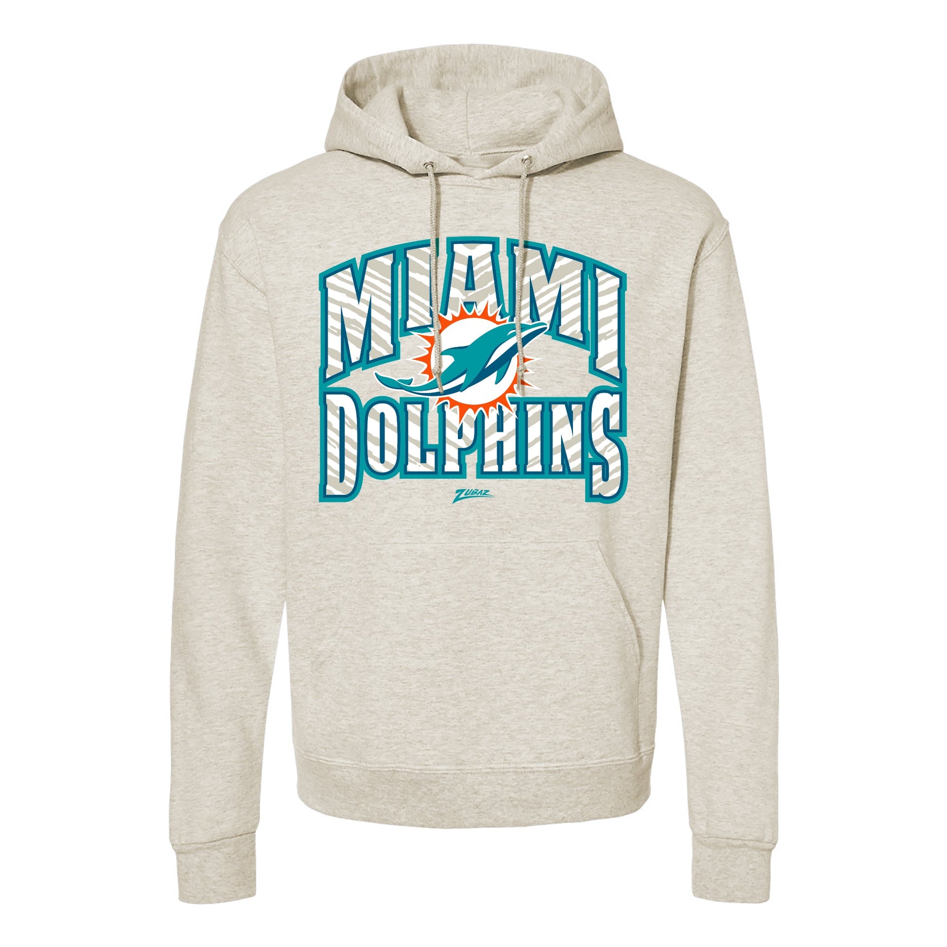Zubaz NFL Miami Dolphins Unisex Pullover Fleece Hoodie for Adult Men and Women, Z2T Kickoff, Oatmeal Heather