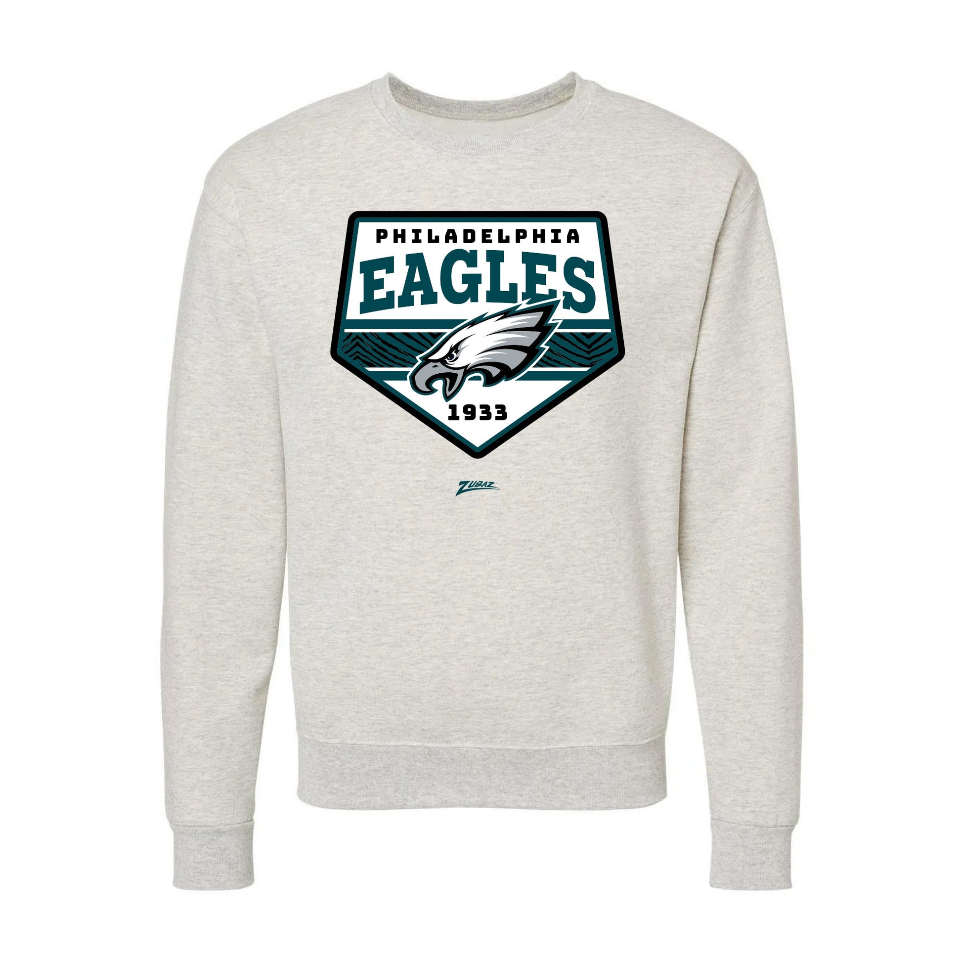 Zubaz NFL Philadelphia Eagles Unisex Adult Men's & Women's Pullover Fleece Crew Neck Sweatshirt, Z2C Chip Shot, Oatmeal Heather