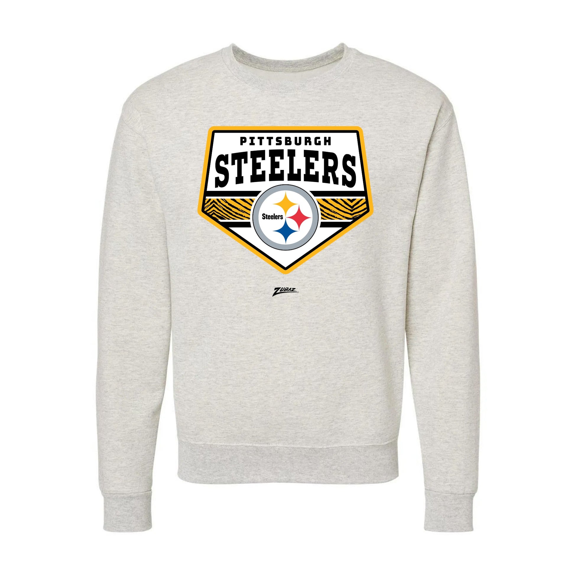 Zubaz NFL Pittsburgh Steelers Unisex Adult Men's & Women's Pullover Fleece Crew Neck Sweatshirt, Z2C Chip Shot, Oatmeal Heather