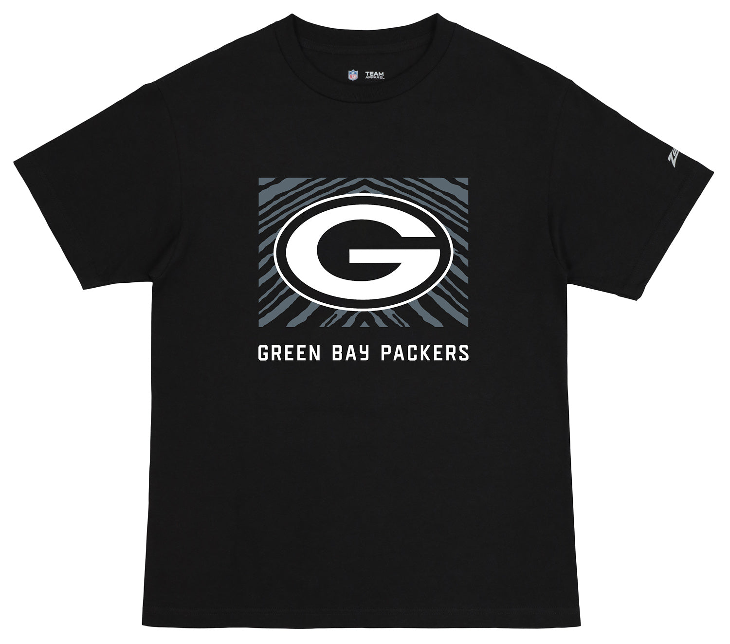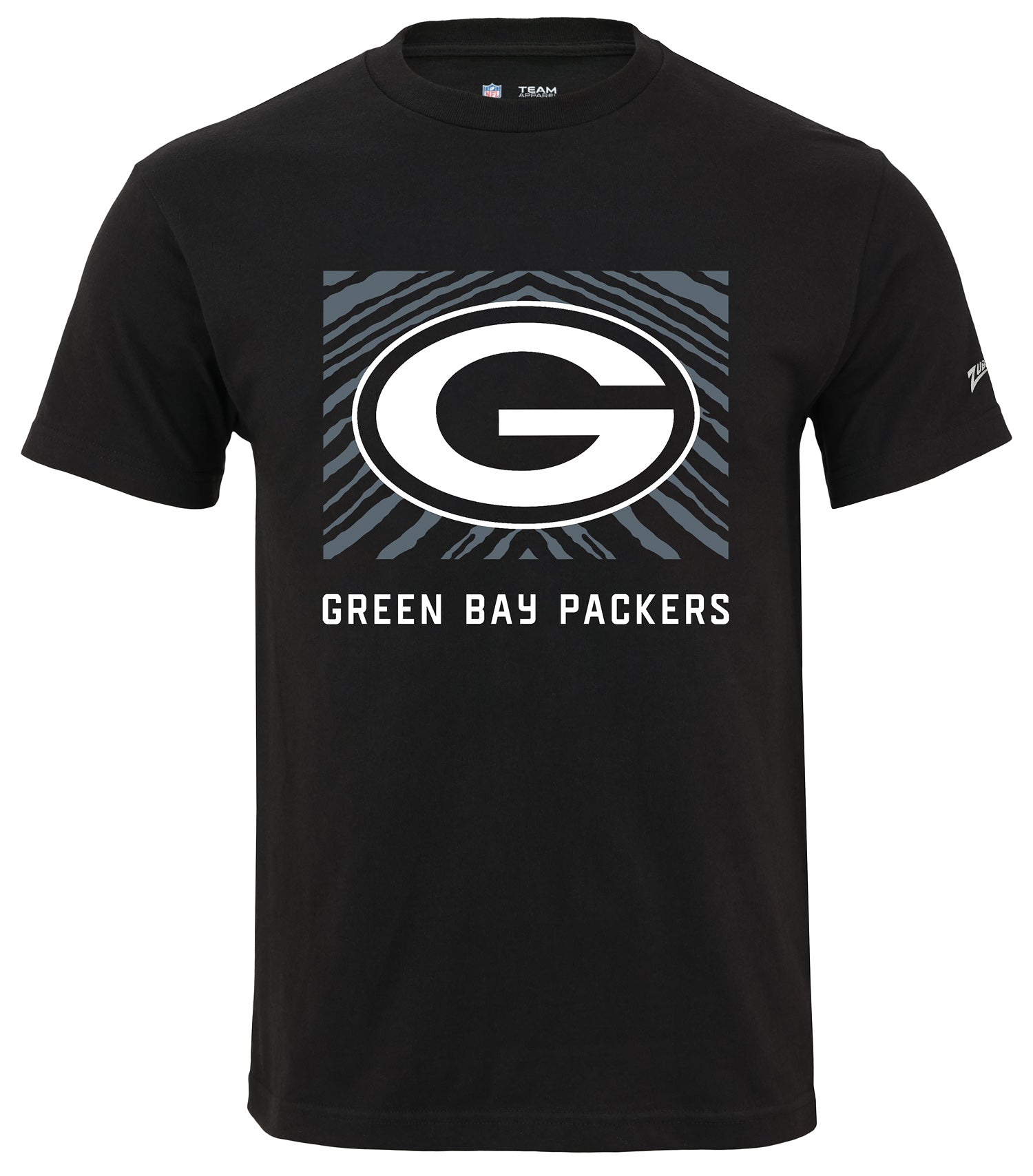 Zubaz NFL Unisex Cotton Heavyweight Short Sleeve T-shirt Black With Grey Tonal Tunnel Logo for Men and Women, Green Bay Packers
