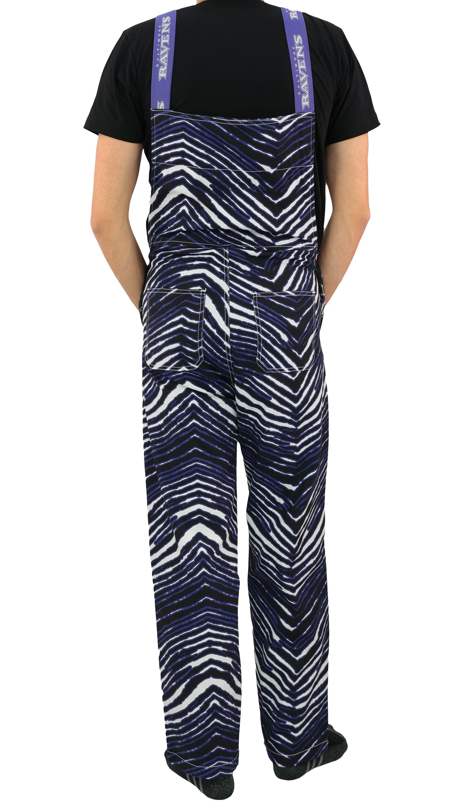 Zubaz NFL Unisex Zebra Lined Bib Overalls for Adult Men and Women, Baltimore Ravens