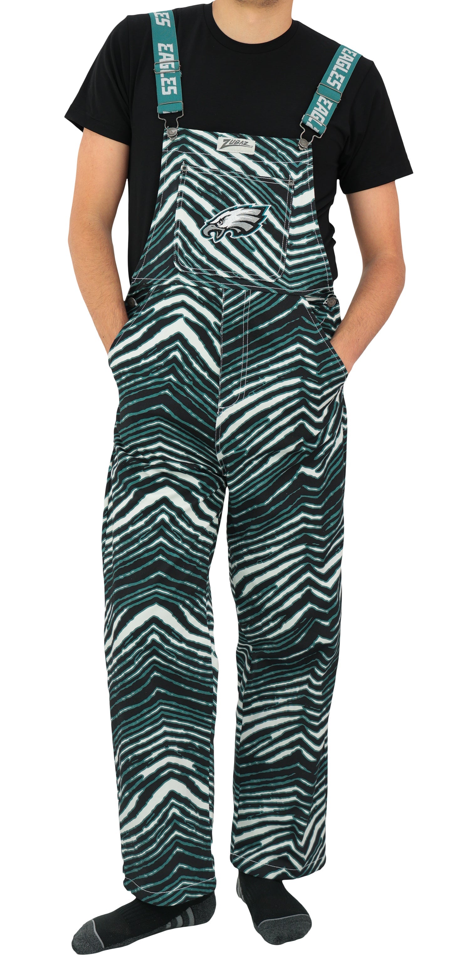 Zubaz NFL Unisex Zebra Lined Bib Overalls for Adult Men and Women, Philadelphia Eagles