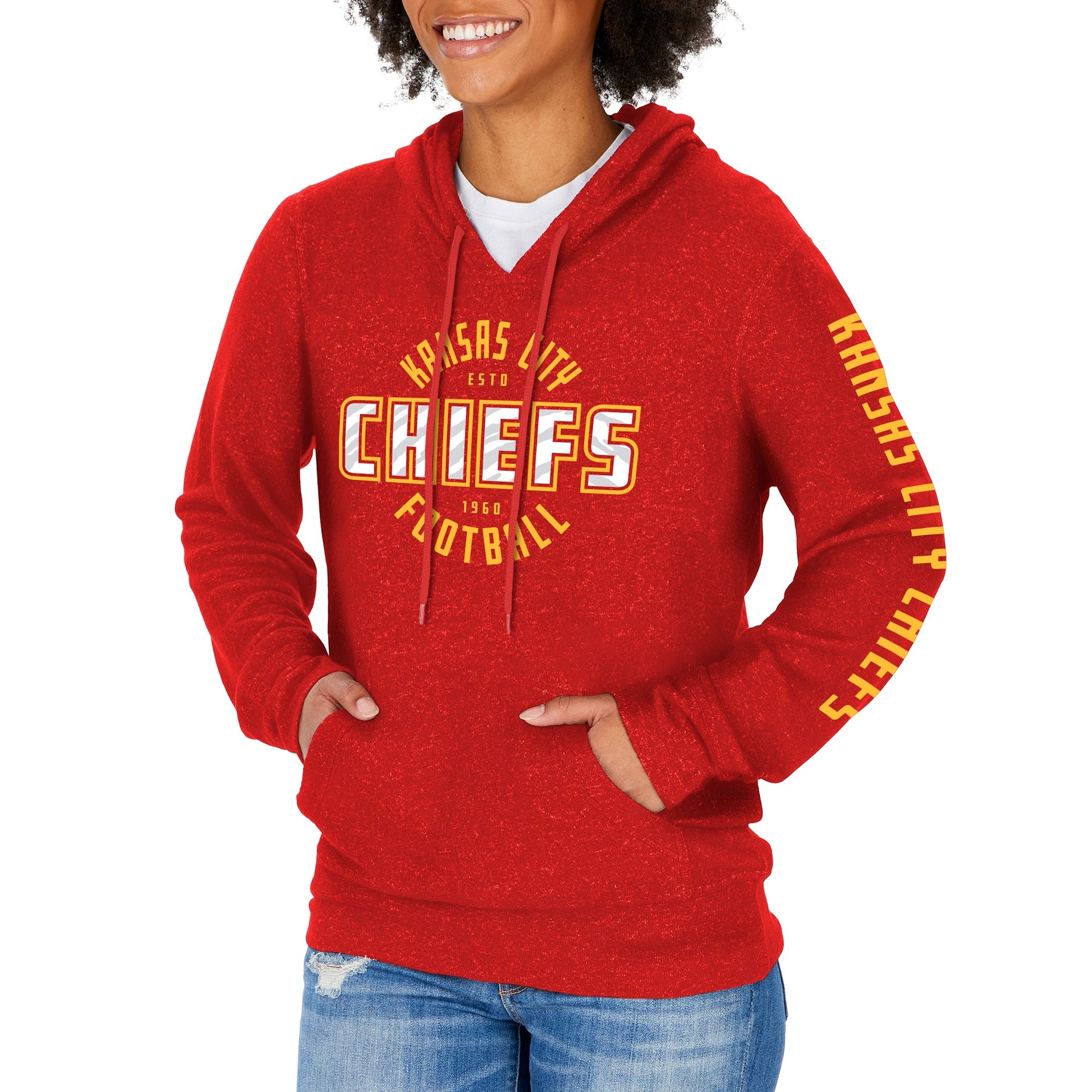 Zubaz NFL Women's Kansas City Chiefs Marled Soft Pullover Hoodie