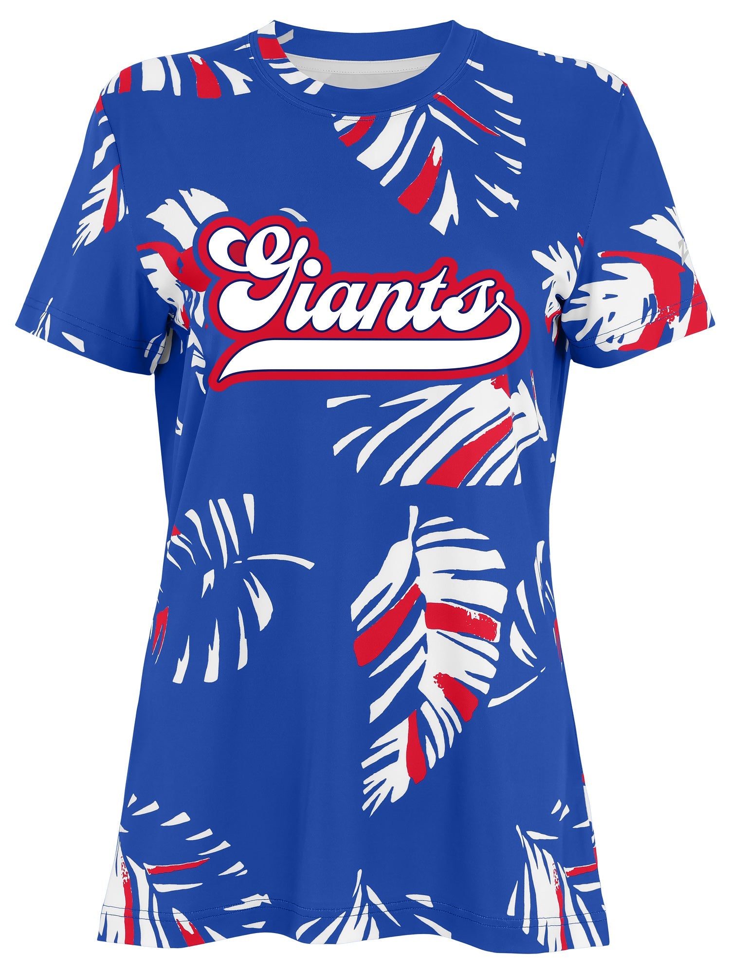 Zubaz NFL Womens Leaf Team Color Script Short Sleeve T-Shirt, New York Giants