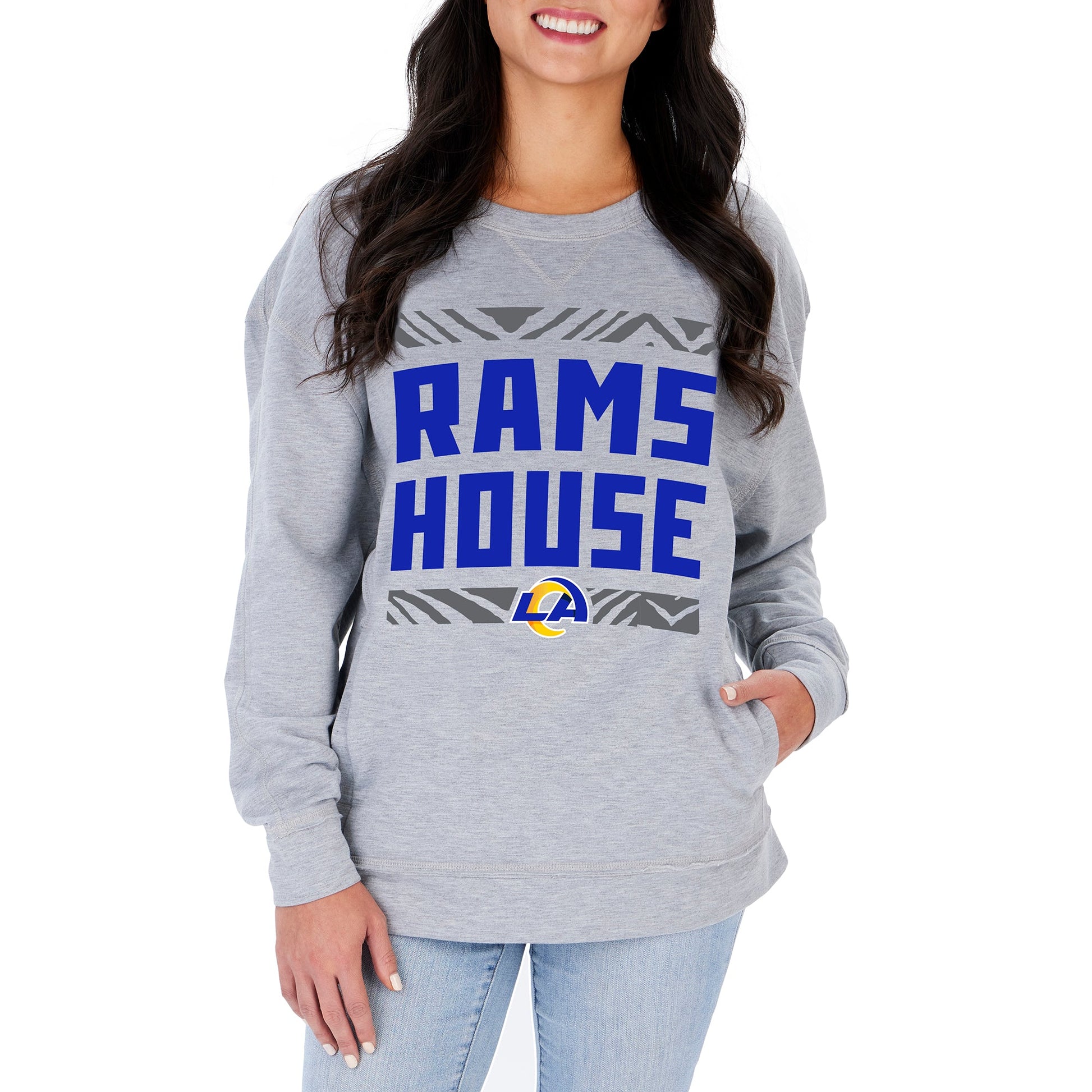 Zubaz NFL Women's Los Angeles Rams Heather Gray Crewneck Sweatshirt