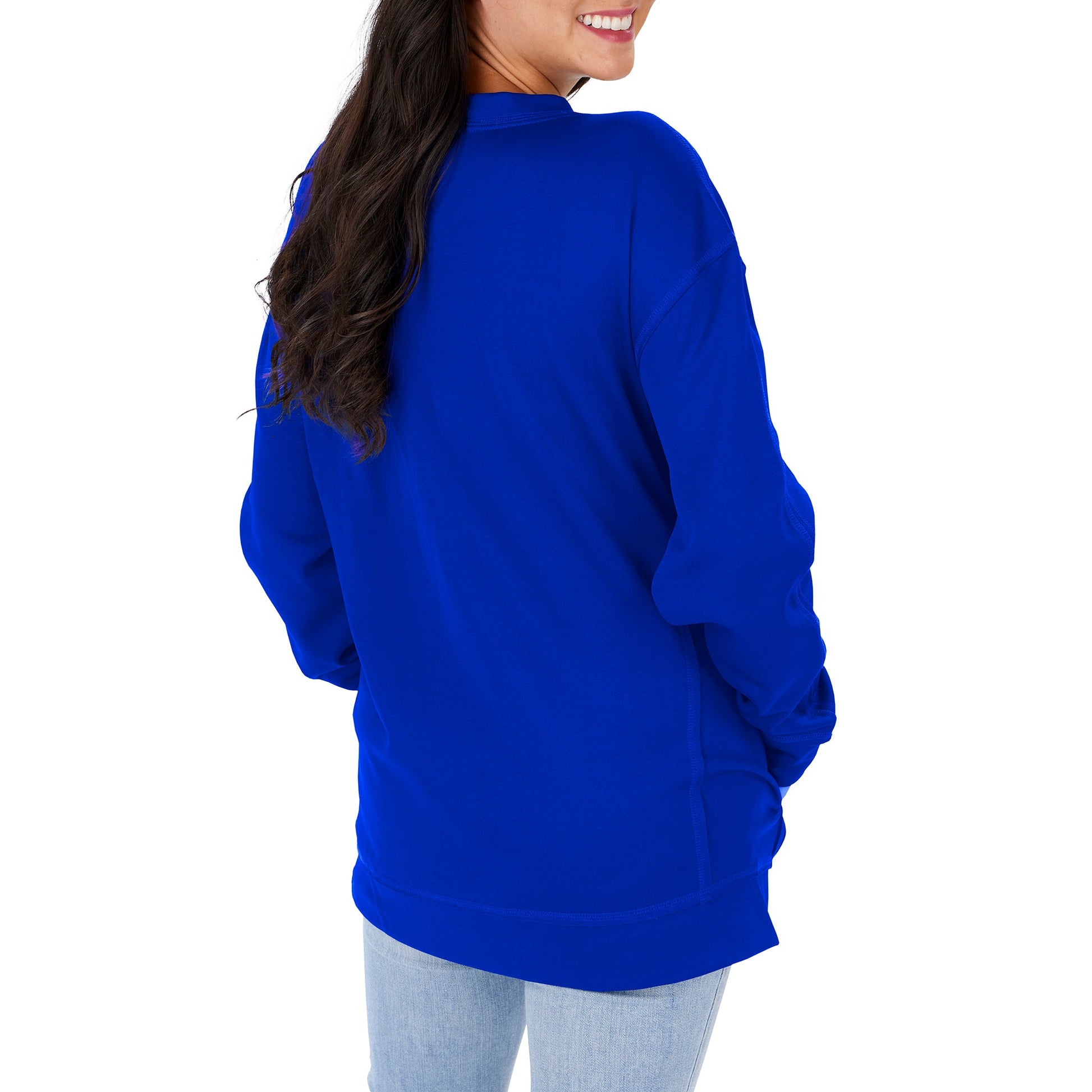 Zubaz NFL Women's Los Angeles Rams Team Color & Slogan Crewneck Sweatshirt