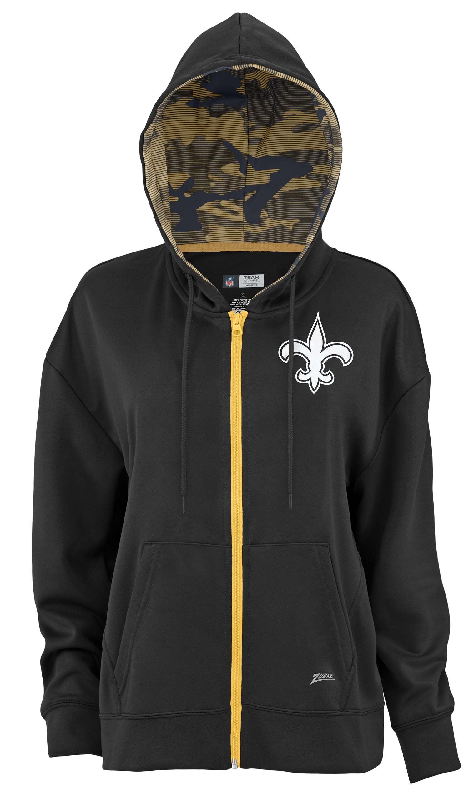 Zubaz NFL Women's Standard Full Zip Hoodie New Orleans Saints
