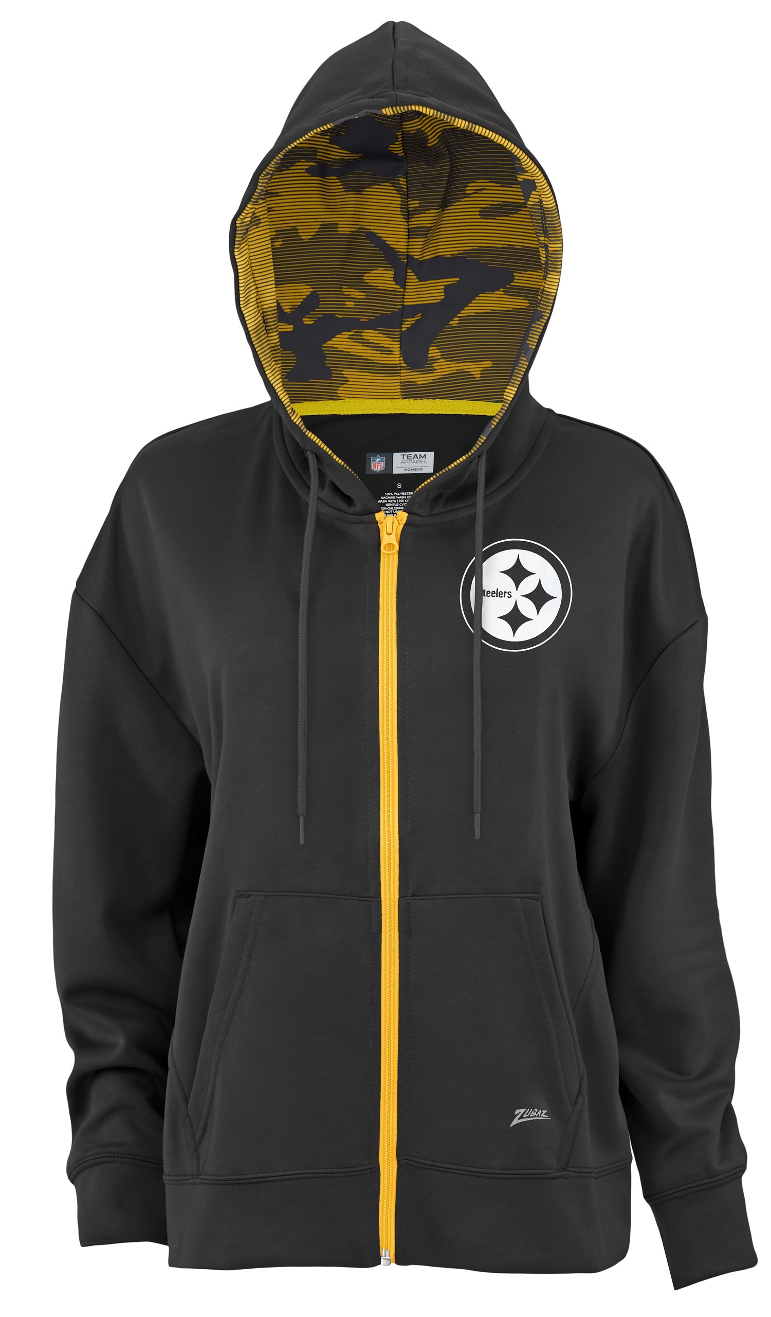 Zubaz NFL Women's Standard Full Zip Hoodie Pittsburgh Steelers
