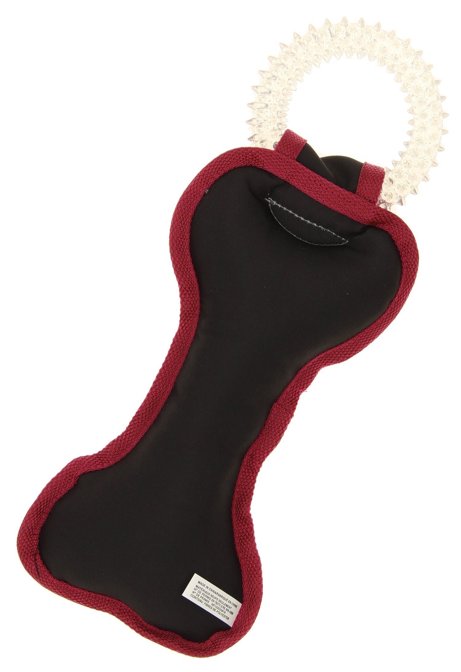 - Bone shaped tug toy made of tough & durable nylon material with double trim stitches