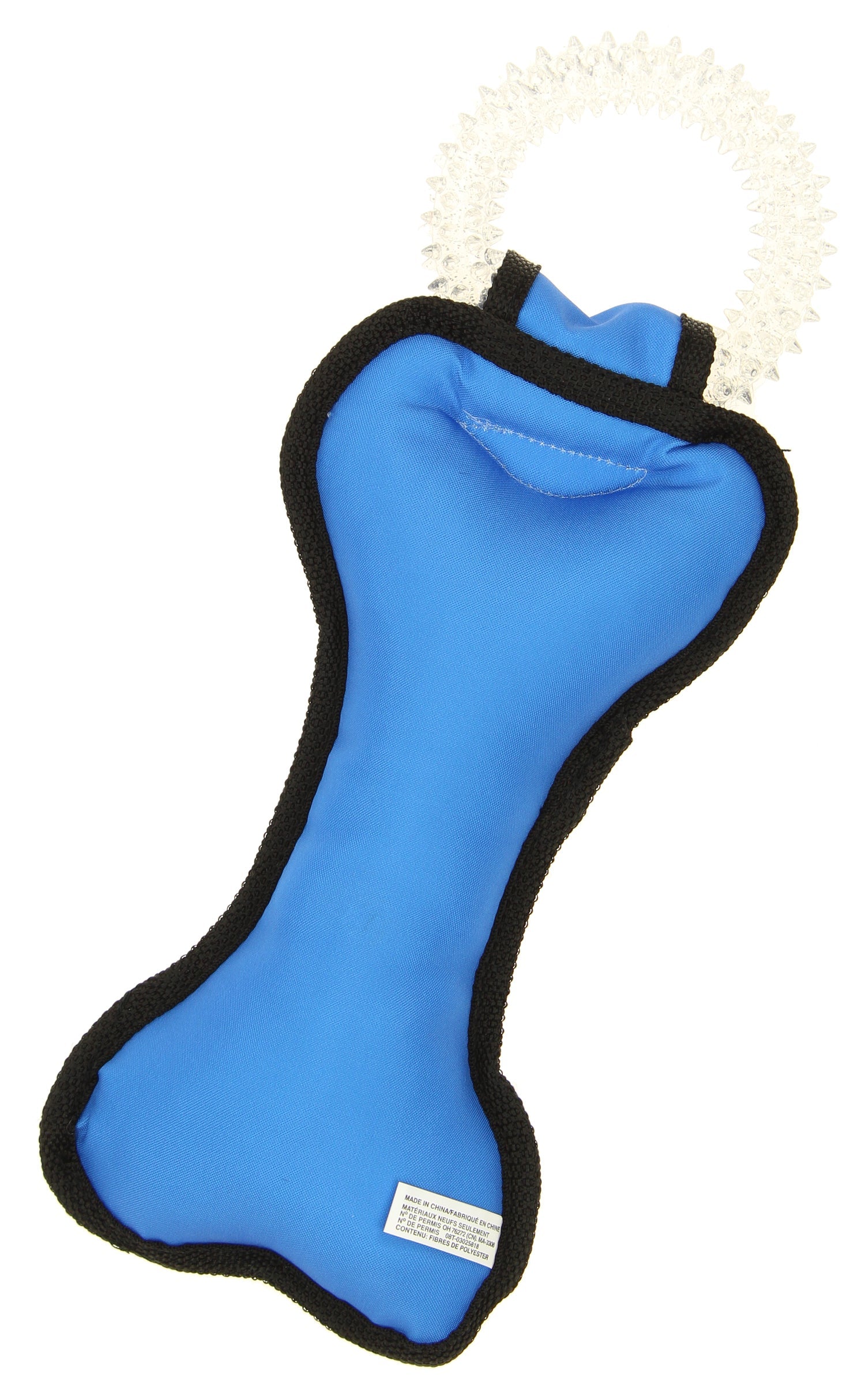 - Bone shaped tug toy made of tough & durable nylon material with double trim stitches